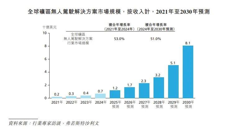 《节点财经》观察发现,易控智驾之所以取得这么快的增速,离不开内外环境的合力。外部环境上,据中商产业研究院预测,在全球追求降本增效与生产安全等实际需求的影响下,2025年全球矿区无人驾驶解决方案按收入计的市场规模将达12亿美元,2030年将达到81亿美元。