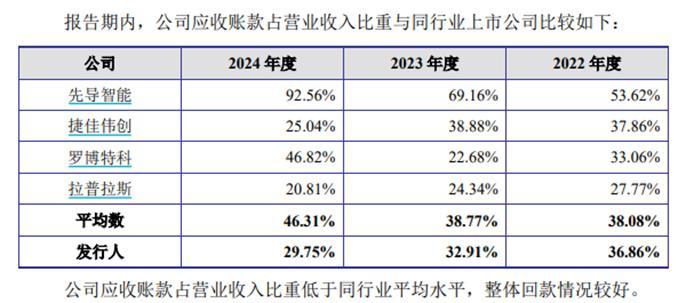 但是招股说明书给出的结论是“公司应收账款占营业收入比重低于同行业平均水平,整体回款情况较好。”正因为它把先导智能拉过来比较了,这有效的拉高了平均水平。