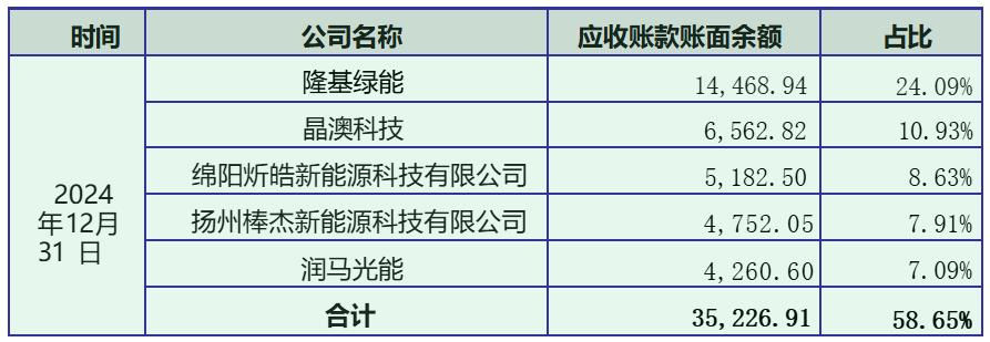 那我们也看看江松科技的应收款对象,除了隆基绿能、晶澳科技两家头部企业外,第三大客户炘皓新能源(已被国企接盘重整)、第四大客户棒杰已经暴雷了。