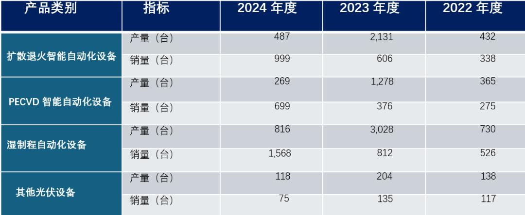 招股说明书显示:2024年公司的扩散退火智能自动化设备生产量同比下降77%;PECVD智能自动化设备同比下降了79%;湿制程自动化设备同比下降了73%。