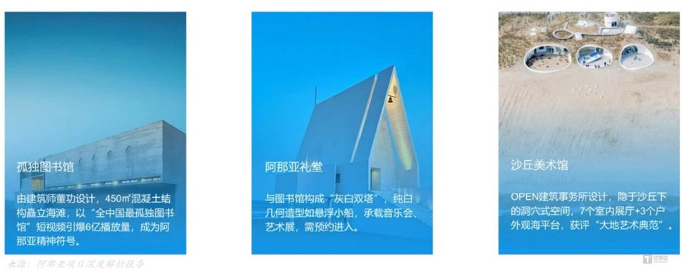 如何实现沉浸式体验?极致的沉浸是自我固有认知的打破与新身份的重新融入,那么就需要在心理层面设计全新故事线,在生理层面提供多维感官的全新刺激。一些小例子或许可以让我们更有实感。迪士尼乐园每天一定有动画角色游行,各个动画主角和热情洋溢的工作人员一起带领众人在集体游乐中脱下强自我认知的隔离盔甲,忘我地接受音乐、色彩以及玩偶毛茸茸小手的触觉刺激,从而将自己带入到迪士尼的童话世界观中。阿那亚的沉浸式体验高潮在“海边精神主轴”上,在海风中望向大海,面对孤独图书馆、漂浮小船礼堂、沙丘美术馆,艺术氛围感和每个人心中的孤独感交织,这是阿那亚的“海岸精神”。从海岸风景到人文社区,“海岸精神”再造了一个人文精神的时空。