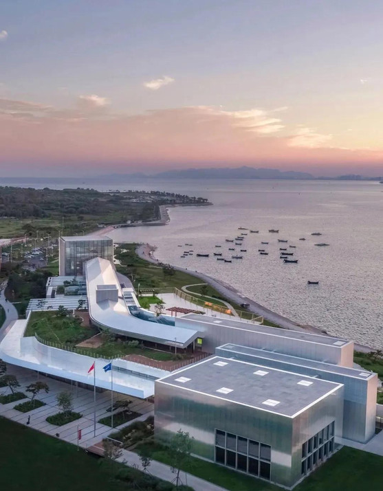 2019年,西海美术馆注册成立,2021年8月12日对外开放,定位是一家非营利性艺术机构。美术馆主体建筑1.7万平方米,12间相连互通又相对独立的展厅依海而建。