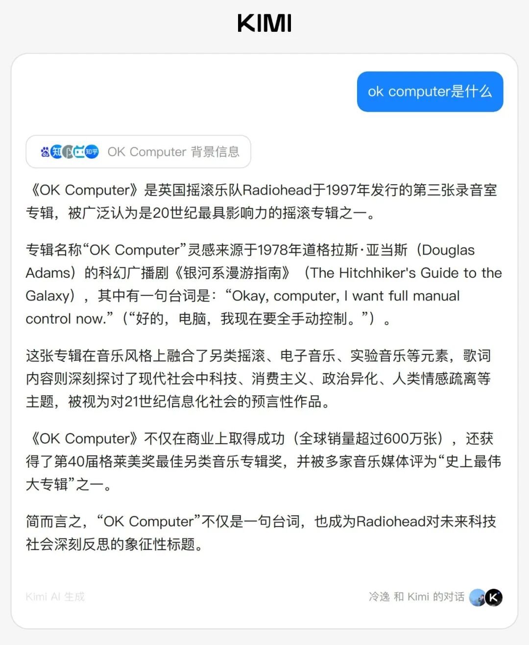 Kimi对自己第一款全栈助理的命名,没有选科幻片里常见的赛博音节,也没拿神话或数学典故,而是挑了一句带着 Britpop冷感、又暗藏人文体温的玩笑式口令。