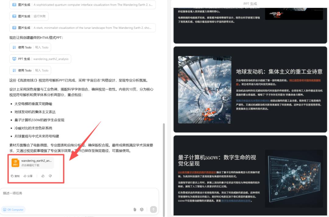 之前的html式PPT,很多人反馈转为PPTX/PDF格式后,效果大打折扣,文字错乱、排版混乱,根本没法用。Kimi这应该是第一个既能用coding模型写出精美PPT又能下载PPT格式不丢效果的Agent,真的太牛了。