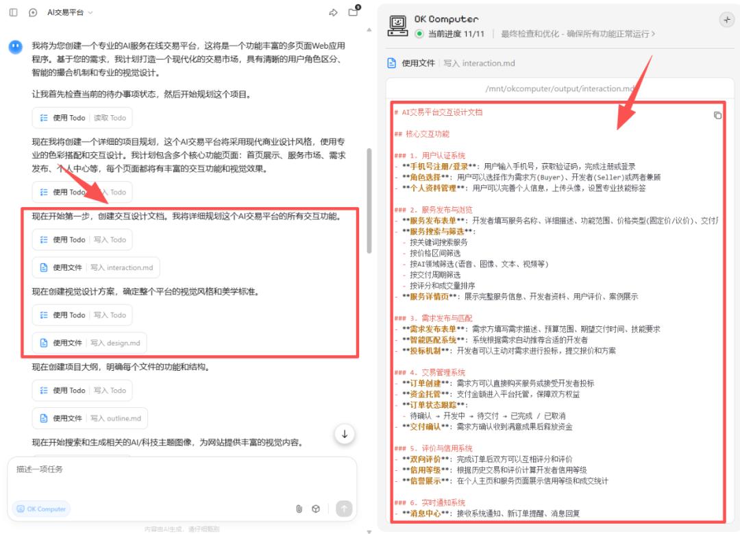 前几天,在云栖大会上看到一个很有意思的产品,叫“AI交易所”(一个撮合AI需求方和开发者的平台)。我试试,看能不能用「OK Computer」把网站原型做出来。