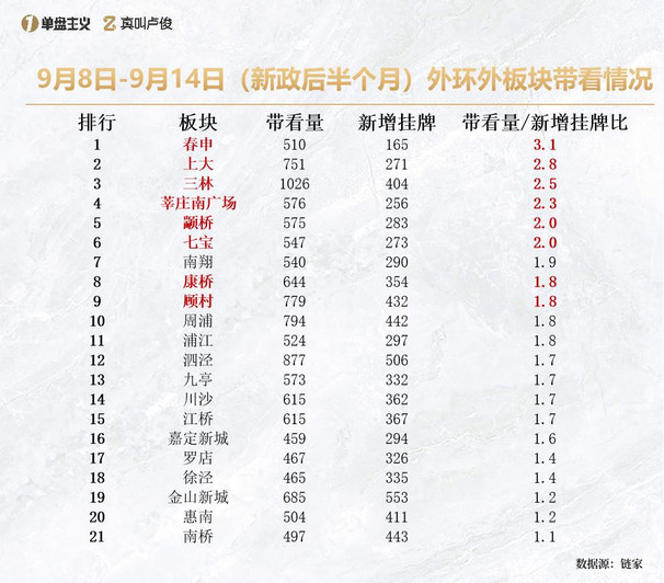 发现了吗,关注度最高的还确实是那些紧贴外环线的板块,比如:春申、上大、三林等等。比如春申有165套的新增挂牌,却有510组带看量,演唱会抢票的“跨区捡漏心理”正在上海楼市真实上演