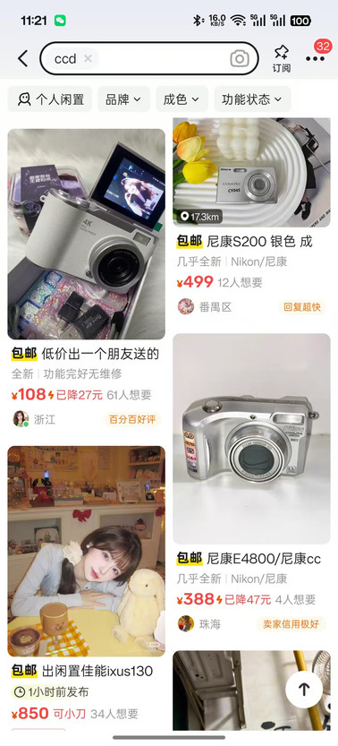 另一方面,CCD相机也足够便宜,即使被炒到价格翻了几倍甚至十几倍,普通款也就两三百元,贵一些的六七百也差不多到头了,这个价格大多数人都能承担得起。而且,当你不想用时,在闲鱼等二手交易平台甚至可以轻松以购入价格出售,运气好遇到同款人气飙升时,小赚一笔也是常有的事。