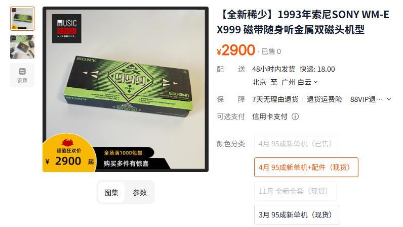 所以,如果你想现在买到一台保存完好且功能正常的磁带机,除了音质还不如MXCP-P100的低端货外,其余价格基本远超MXCP-P100的售价。小雷在淘宝简单搜索了一下,一款1993年生产的索尼WM-EW999磁带机,配件不齐全的版本市场价大概在1500元左右,如果配件全齐则要价接近3000元。