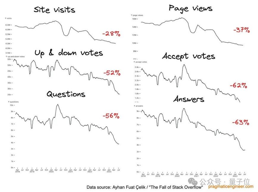 程序员在问答网站上的活跃度急剧下降,遇到问题不再第一时间去社区发帖,而是习惯于直接向大模型提问,或者依赖Cursor等智能体自动补全。