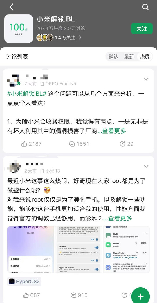 在酷安上,关于“小米解锁Bootloader”的热度达到了267.3万,引发了2万次讨论,这在属于“小众”的玩机圈中,已经算热度很高的话题,其中相关帖子更是达到了千次回复,这背后,是用户用脚投票的愤怒。