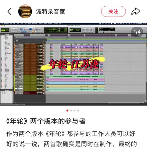 《年轮》原唱争议出现后,小红书博主@波特录音室 发帖表示自己是两个版本《年轮》都参与的工作人员,证明“两个歌确实都是同时在制作”。如今引发纷争,可能是两个歌手及其团队对歌曲存在“信息差”造成的。