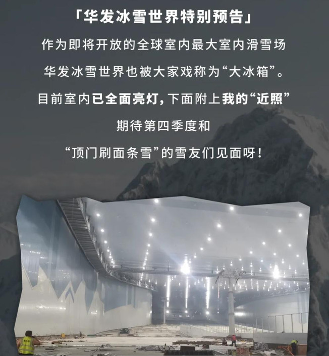 据华发官方发布的最新消息,目前项目已经推进到了雪道施工、幕墙安装阶段,冷库板安装完毕。融创旗下的热雪奇迹仍是主要运营合作伙伴。