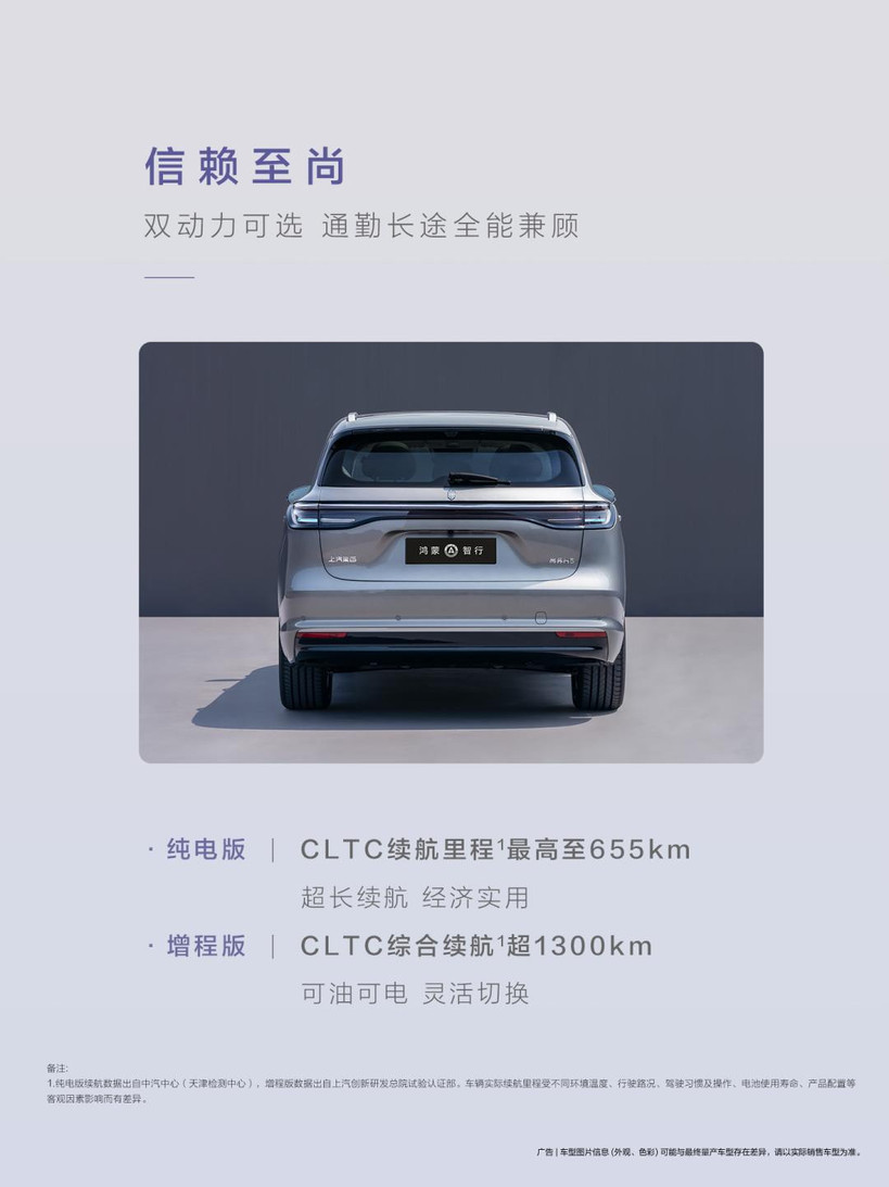 此外,还将配套华为从智舱到旗舰级辅助驾驶的全家桶智能科技。