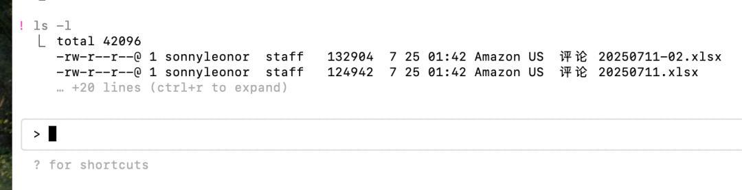 需要查看当前目录文件列表时,我直接用 !ls -l。为什么更好用:对于简单的shell命令,使用!前缀可以直接在bash中执行,无需经过大模型思考,**速度快,不花钱**。