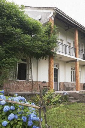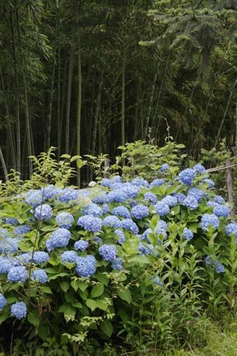 孔亚雷居住的小村庄位于莫干山脚下,距离湖州德清县高铁站约半小时车程。我们抵达时是正午,孔亚雷站在自家小院门口,头戴草帽,向我们遥遥招手。正值绣球花期,他身后几丛蓝色的无尽夏,大朵大朵地从篱笆探出头来。