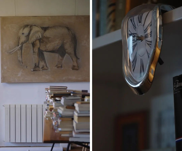 客厅中的大象油画,与“达利的钟”