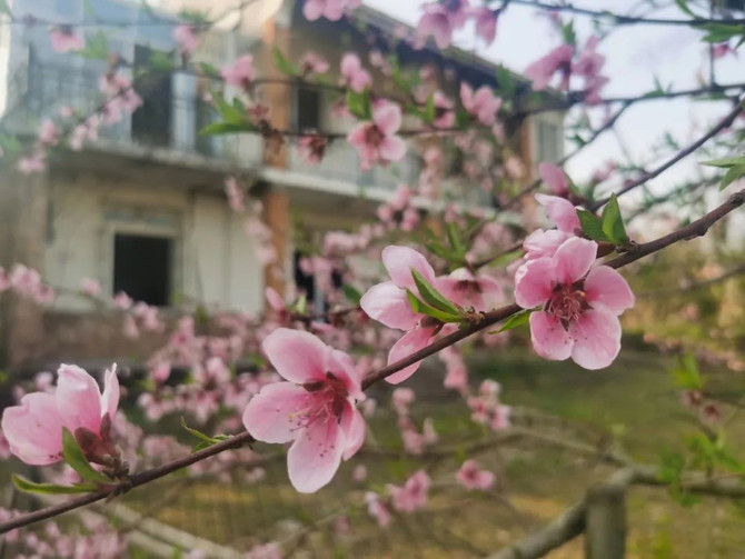 春天,院子里的桃花开了