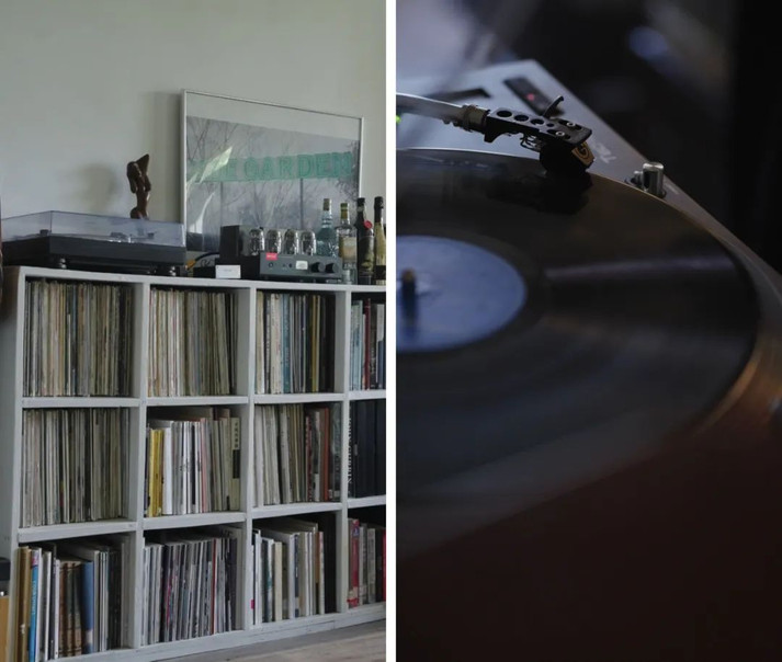 孔亚雷习惯听黑胶,左图为他收藏的黑胶唱片