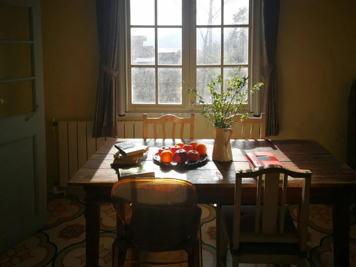 2016年,寻觅许久,我看中了一栋莫干山脚下的老房子。首先吸引我的是房子外观,有一种分寸感,这种分寸感并非是设计师设计出来的,而是民间智慧。房子不大,但有个宽敞明亮的庭院,周围被茶园、群山和湖水环绕——我常常会去湖边散步。