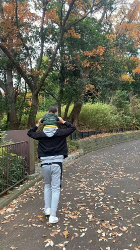 爸爸在附近的公园带娃。(图/受访者供图)