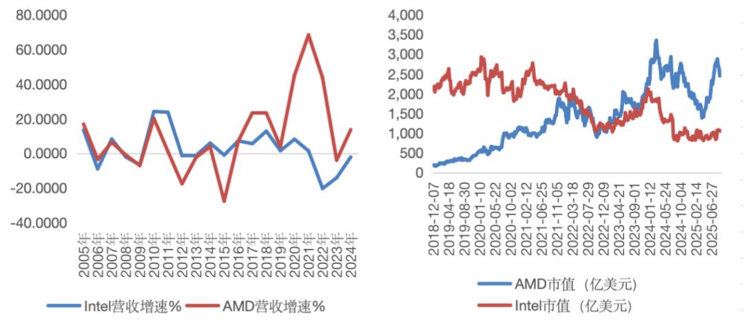 图:Intel和AMD业绩及市值变化对比 数据来源:wind,36氪整理