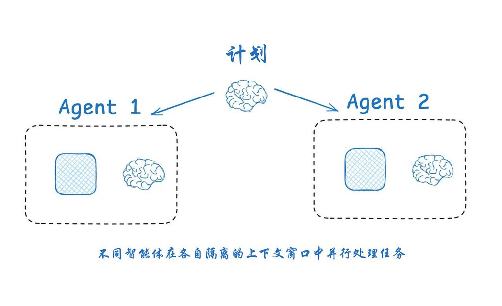 将一个大任务拆分成两个或多个子任务,每个子任务都有一组特定的工具、指令和各自的上下文窗口。这样做,既利用并行计算加速,又通过隔离保证任务处理的独立性和准确性 ,避免多个Agent之间互相干扰和影响。