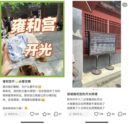 有些寺庙还会给文创产品提供特别的仪式感,比如北京雍和宫的手串开光服务,消费者可以拿着手串在开光房间里和师傅一起念经祈福,这种仪式能给消费者带来即时的心理安慰。