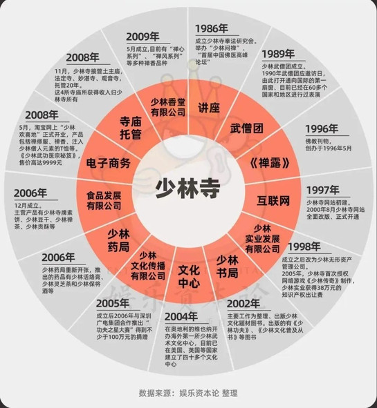 在这之后,少林寺不单单是老百姓对佛教的信仰,是郑州嵩山的知名景点,还是一个逐步迈向全球的知名IP,伴随着早已冲破山门的商业版图。