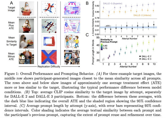 在10次必要提示尝试中,使用DALL-E 3的参与者生成图像与目标图像的余弦相似度平均高出0.0164。