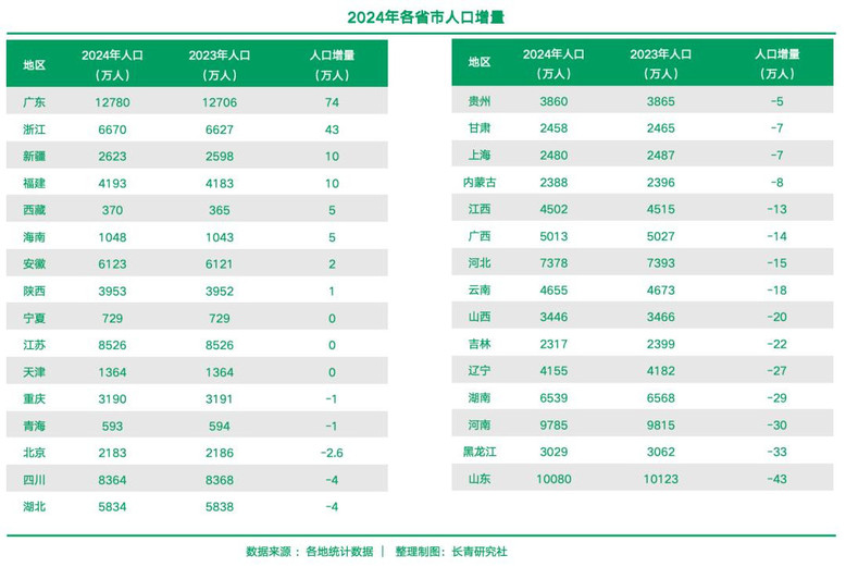 2024年,全国31个省,只有8个人口正增长,3个零增长,剩下近三分之二都在减少。