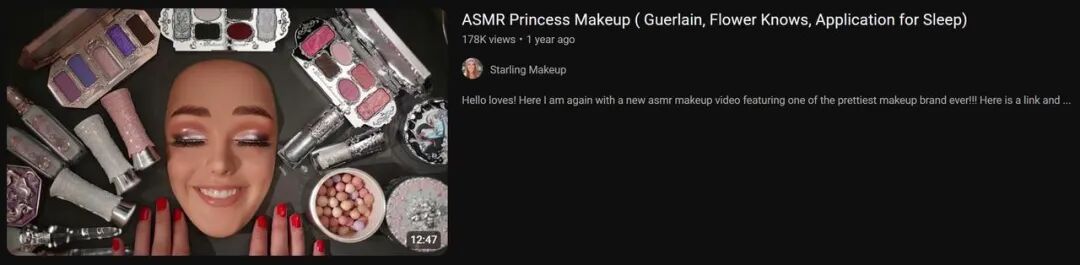 而且因为视听觉效应极佳,花知晓不仅投放了一些美妆博主,还跨界与ASMR(声控)博主多有互动,她们要么轻语介绍花知晓全套产品,要么用花知晓新品进行轻语化妆。