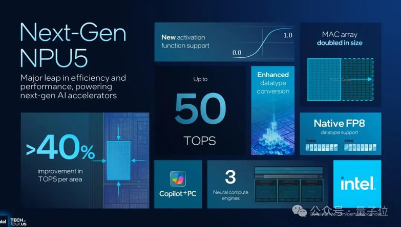 Panther Lake搭载了第五代NPU,提供50 TOPS的专用AI算力,加上GPU的120 TOPS,整个平台的AI算力高达180 TOPS,是微软Copilot+ PC要求的4.5倍。