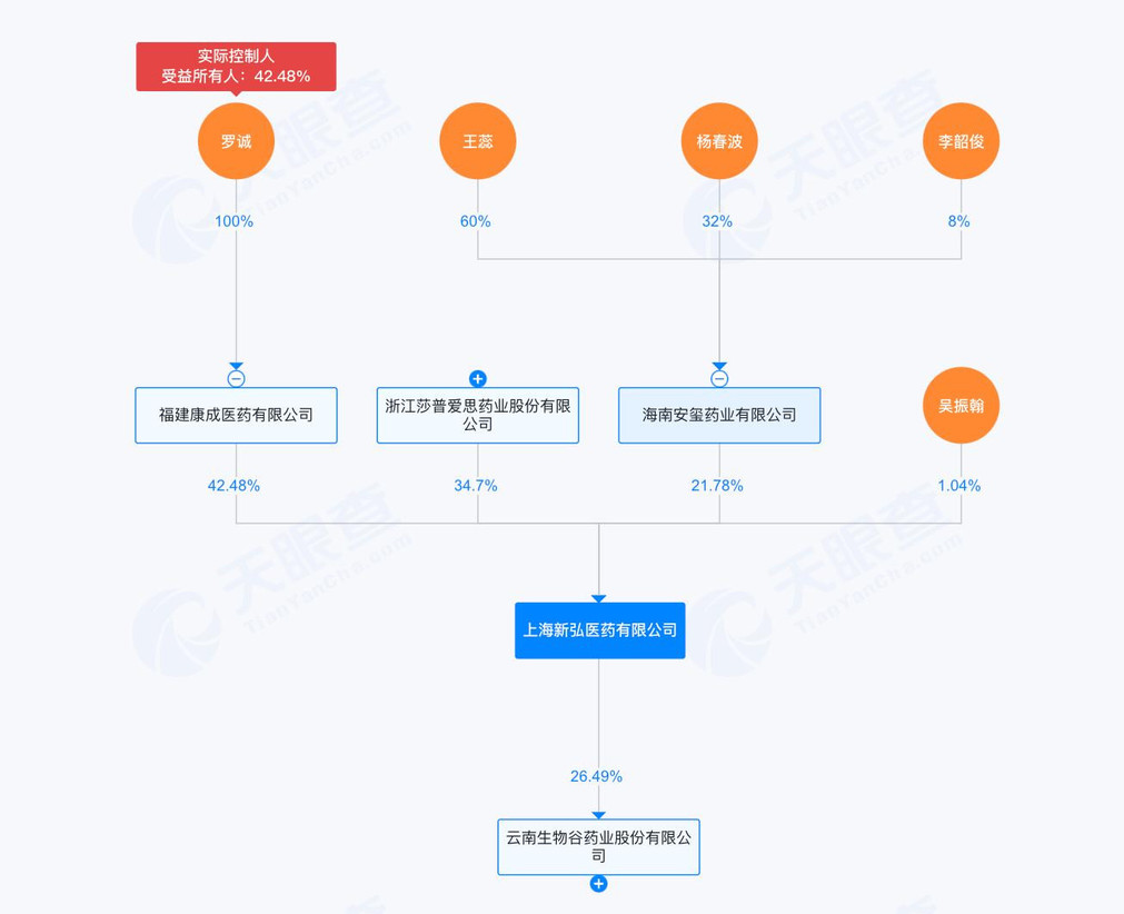 2024年1月9日,上海新弘通过司法拍卖以4.56亿元竞得生物谷原控股股东金沙江投资及前实控人林艳和持有的合计26.49%股票。由此,上海新弘成为生物谷新的控股股东,生物谷实控人由林艳和变更为林弘远、林弘立和海南安玺实控人王蕊、福建康成实控人罗诚共同控制。