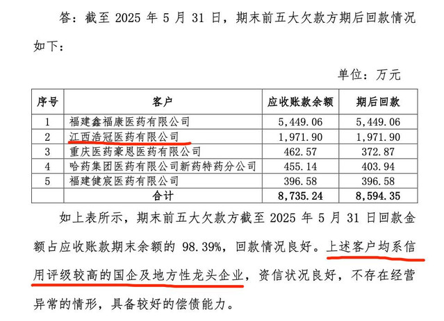 另外,在生物谷的年报问询函回复中,针对北交所问及的应收账款及坏账计提是否充分的问题,生物谷列示了前五大欠款方期后回款的情况,并明确表示“这些客户均系信用评级较高的国企及地方性龙头企业,资信状况良好。”