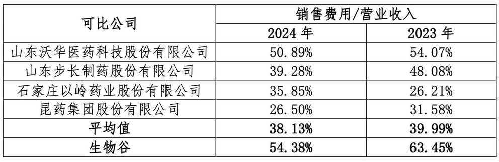 (生物谷与同行销售费用率对比,来源:生物谷年报问询函回复)