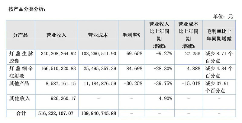 以2024年为例,公司支柱产品灯盏生脉胶囊和灯盏细辛注射液销量有所增加,但由于挂网价格下调,部分原材料涨价,加之灯盏花滴丸、灯盏花素片、灯盏细辛胶囊等毛利率为负,生物谷综合毛利率下降。