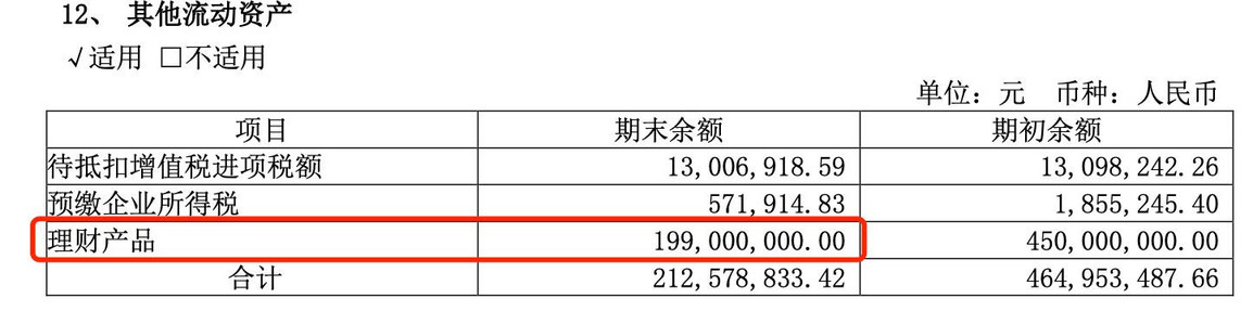 表格中的“其他流动资产”主要是公司购买的理财产品,也即公司货币资金、理财产品、交易性金融资产合计高达6.82亿元,占流动资产的73.33%,公司根本不差钱。