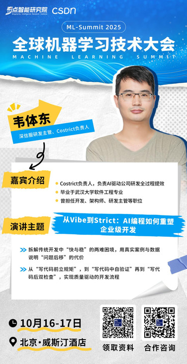 正是在这股变革浪潮之中,2025 全球机器学习技术大会·AI赋能软件开发专题应运而生。在大会现场,来自产学研一线的技术专家将带你从技术原理、模型训练到企业落地全方位了解 AI Coding 的前沿实践与未来趋势。
