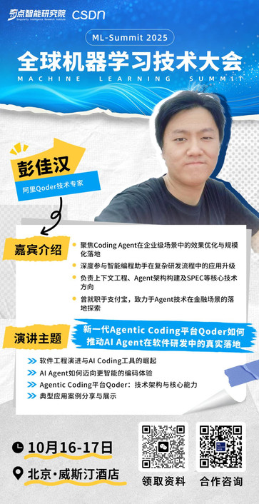 如果说逻辑推理能力的突破是大语言模型走向更深层次的基石,那么如何在企业级场景中真正落地,成为研发团队每天可以依赖的“智能助手”,则是另一条至关重要的路径。来自阿里巴巴的 Qoder 技术专家彭佳汉,正是这一方向的前行者。
