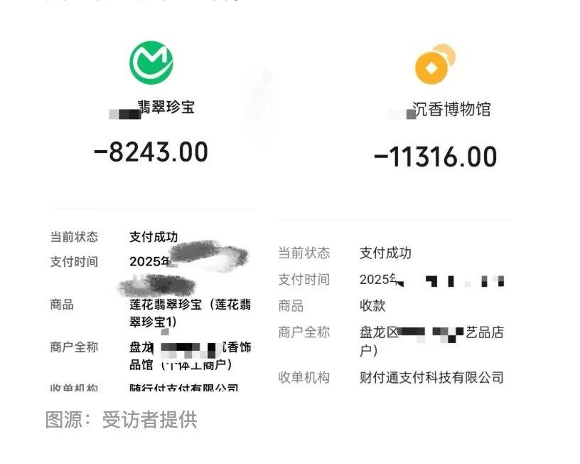 “父母在导购的推销下,还是花了2万多元购买商品。”黄诗无奈向时代财经表示,更让她意外的是,这些标榜“越南特产”的店铺,收款方竟是国内公司,导购的中文也异常流利。从黄诗向时代财经展示的收款截图来看,收款商户均是注册地位于云南省昆明市的个体工商户。“他们的说法是,越南没有微信支付宝账号,只能用国内的,然后通过国内微信收款方再把资金转到越南的店。”