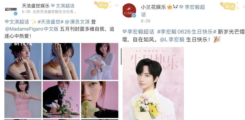 图源:天浩盛世、小兰花娱乐官方微博