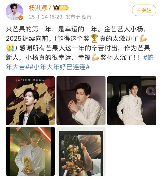 与芒果TV相关的,是背靠湖南广电、自2004年就成立的天娱传媒。2023年底,天娱传媒就成立了新人发展中心,官宣新人杨淇源仅凭亮相照便空降文娱热搜榜首,后续通过《芒果新生班·搭档季》等综艺持续曝光,参演的电视剧《明眸》在今年5月已播出。