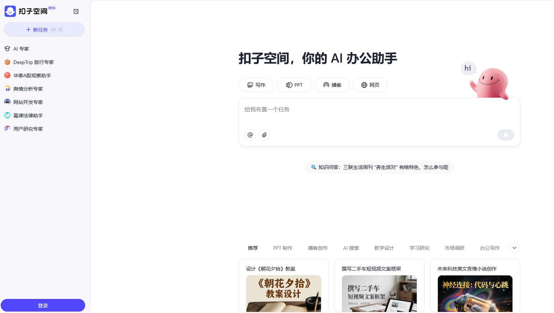 在专业领域,扣子空间构建了“通用实习生 + 领域专家”双轨服务矩阵。其专家智能体能够在特定领域提供高度专业化的服务,如“用户研究专家”可以协助产品经理生成用户访谈提纲、设计调研问卷,还能模拟用户数据并生成分析报告。
