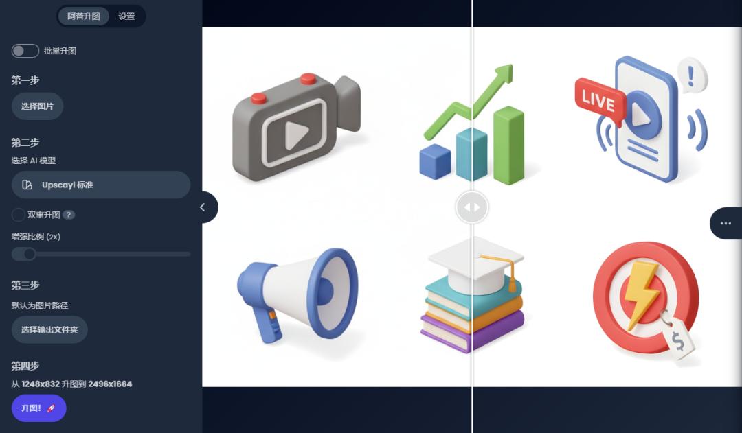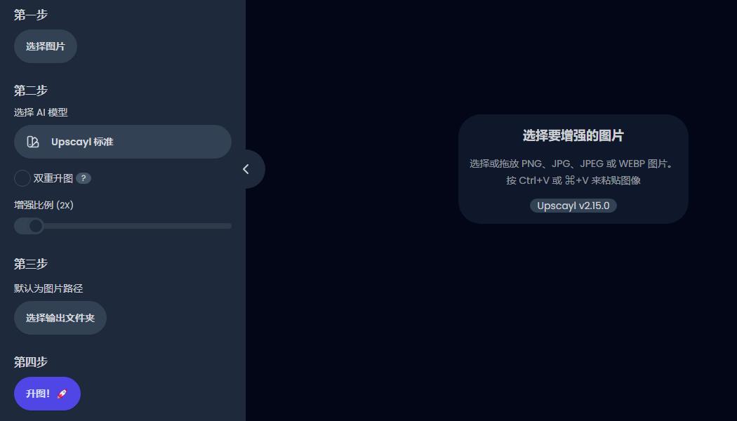 安装后打开 Upscayl,跟着操作: