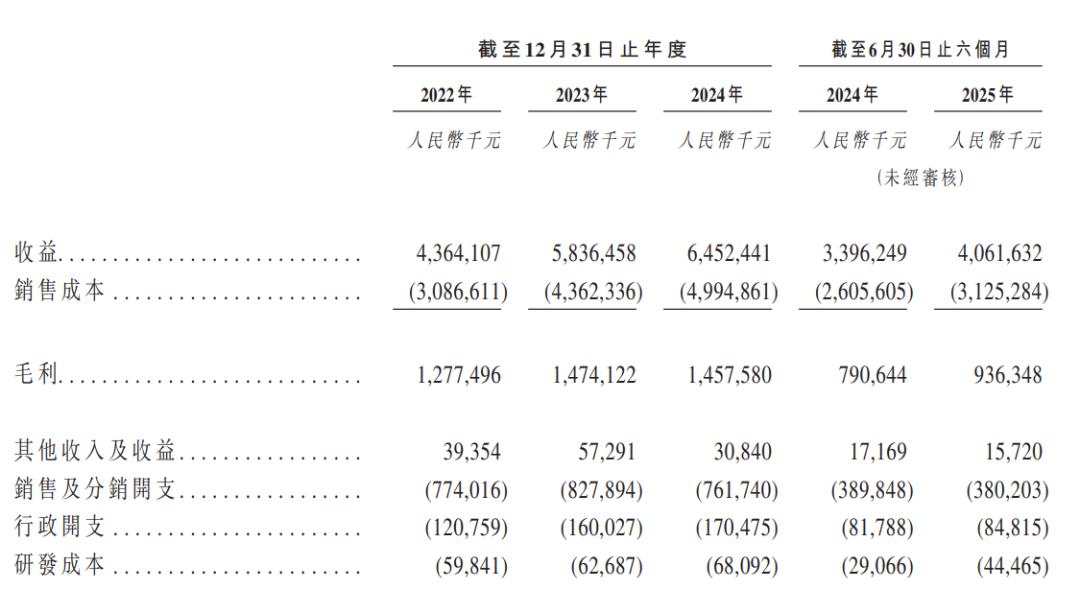 招股书显示,2022年至2024年及2025年前六个月,公司营收分别为43.64亿元、58.37亿元、64.52亿元,及40.62亿元,前三年复合年增长率达21.6%。