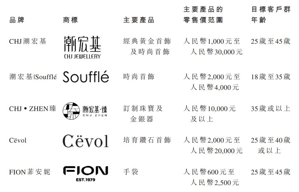翻开招股书,潮宏基将自己定义为一家深耕东方文化的珠宝品牌,致力于国家非遗花丝技艺。以主要品牌CHJ潮宏基为基础,公司旗下还有潮宏基|Soufflé、CHJ·ZHEN臻,以及新培育钻石品牌Cëvol,还有新收购的时尚手袋品牌FION菲安妮——以此划分为珠宝和手袋两大业务。