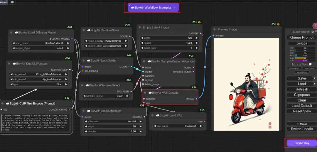在最近的文章中已经介绍不少关于Flux模型,但是这是一款模型参数为2B,weight大小约23.8G的大模型。不仅体积大,最大问题是需要的显卡显存更大,dev版本接近24G,RTX4090多张图运行也较吃力(慢)。这一点难住了大部分同学的进一步体验。今天主题为大家介绍一款ComfyUI插件:BizyAir,BizyAir 是一系列 ComfyUI 节点的集合,能够帮助用户克服本地环境和硬件的限制,更轻松地使用 ComfyUI 生成高质量的内容。COmfyUI中本地体验,使用云端的GPU资源,于原生ComfyUI无缝的体验。