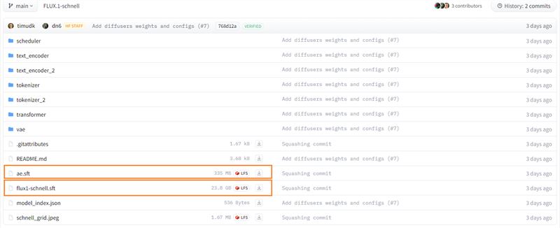 下载大模型:https://huggingface.co/black-forest-labs/FLUX.1-schnell/tree/main