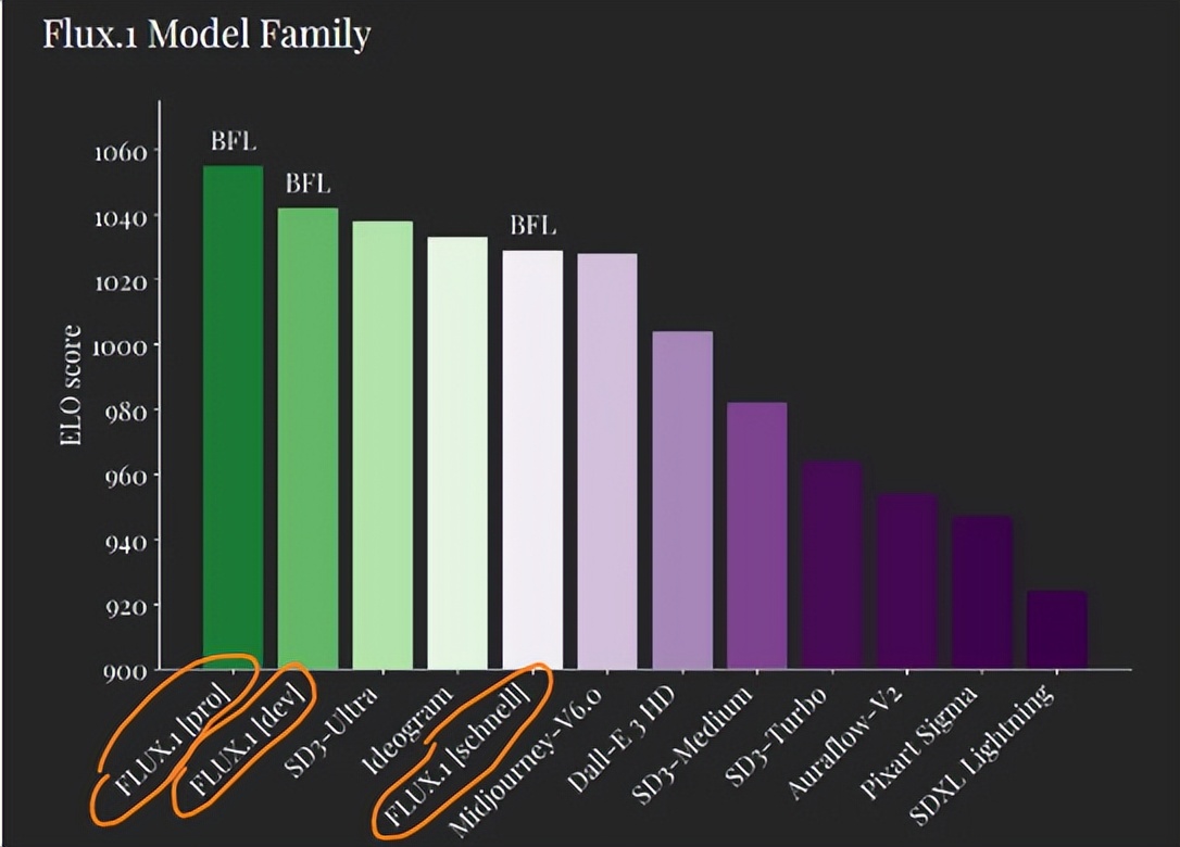 Black Forest 的图表声称其 Pro 和 Dev 模型是迄今为止最好的图像生成器,而其功能较弱的 Schnell 排名介于 Midjourney v5 和 Ideogram 之间。