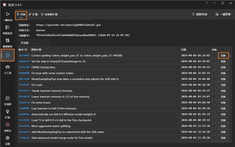 目前ComfyUI最新版本已经兼容FLux模型了, 只需内核升级到最新即可体验。